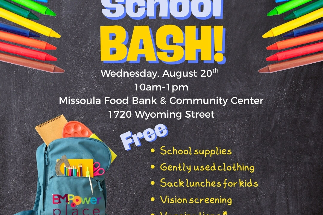 The end of summer is fast approaching and it's time to get ready for going BACK TO SCHOOL! Missoula Food Bank & Community Center has free school supplies, backpacks, and gently used clothing, as well as our Kids Eat Free summer lunch program. We will be partnering with some other awesome organizations who will be providing free services like vaccinations and vision screening. Bring your kiddos or grandkids and get some FREE back-to-school shopping done! This event will take place in and outside of EmPower Place.